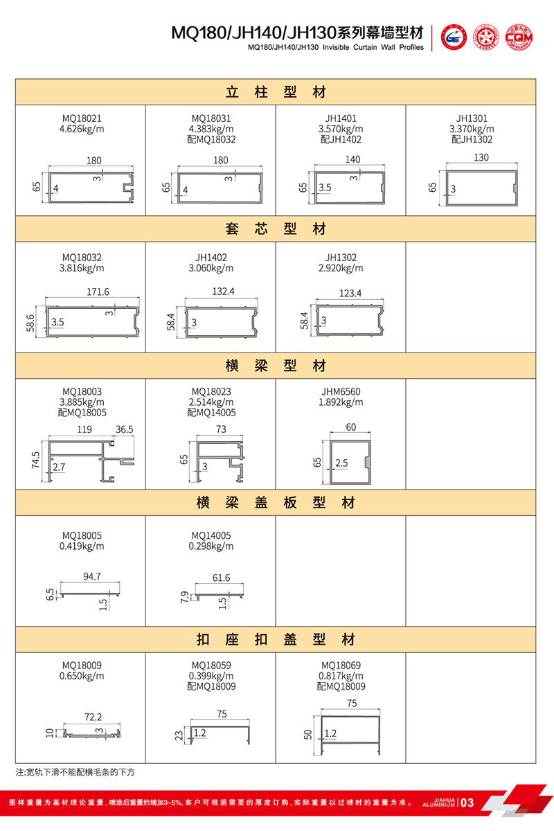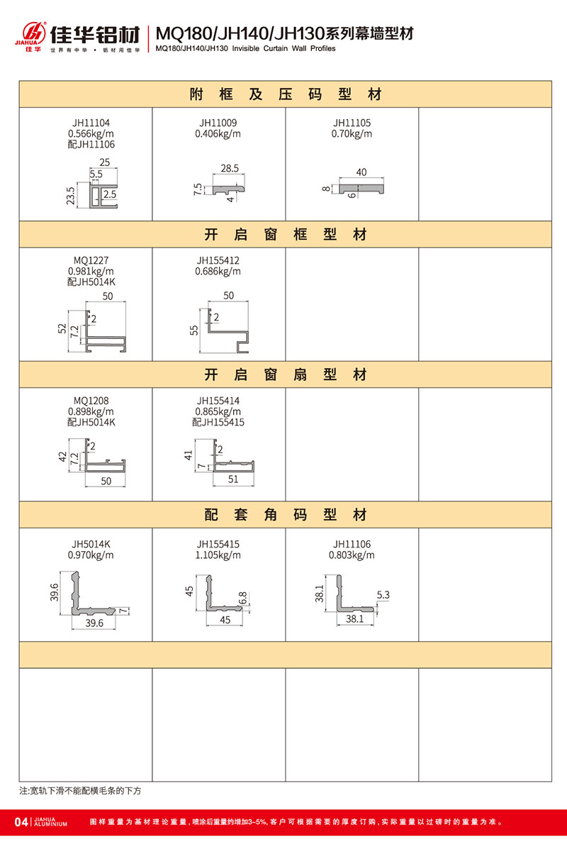 鋁型材規(guī)格型號:MQ180/JH140/JH130 A