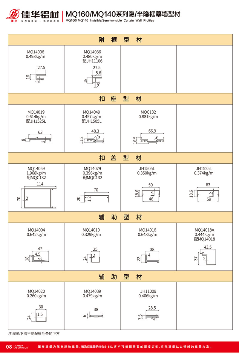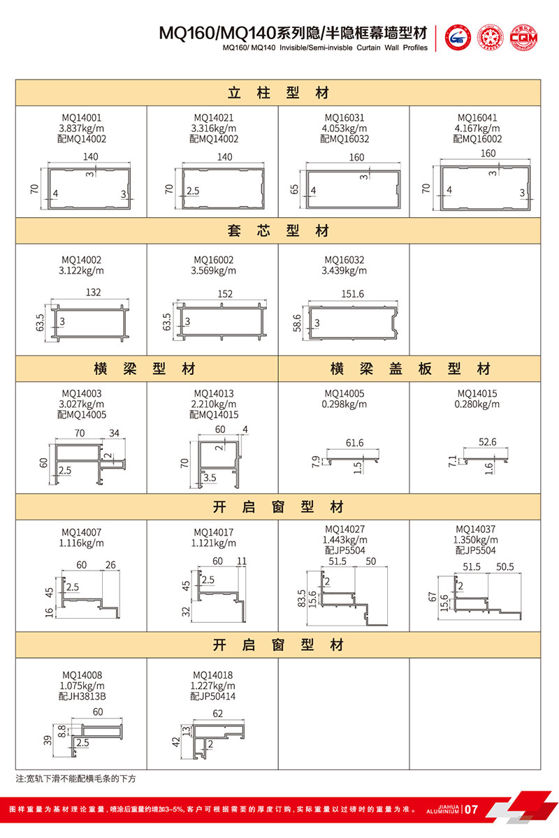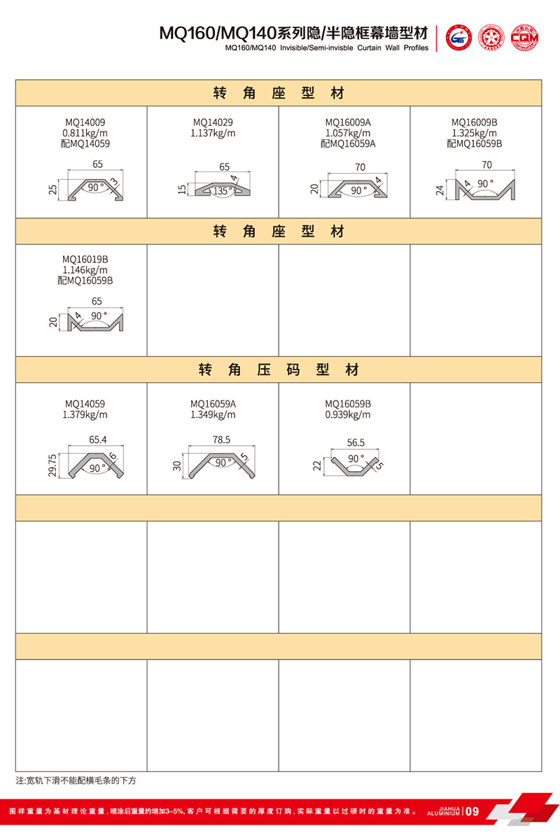 鋁型材規(guī)格型號:MQ160/MQ140 A