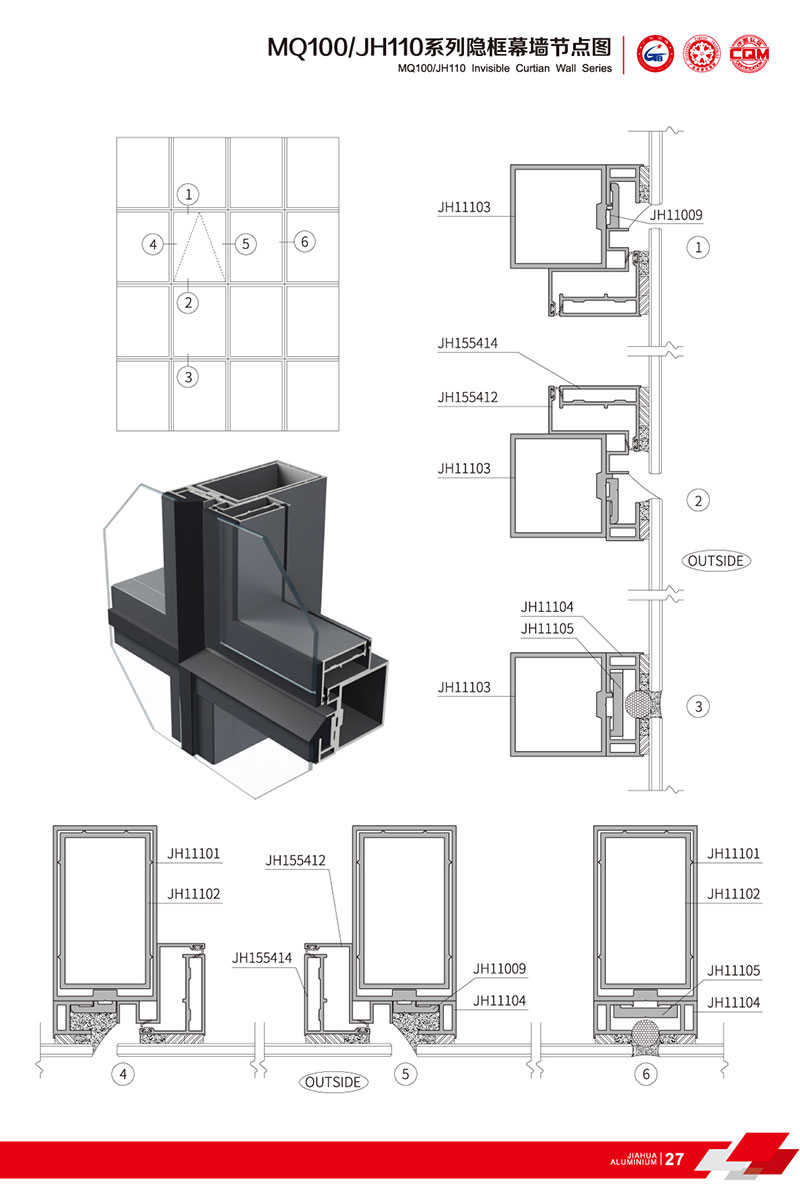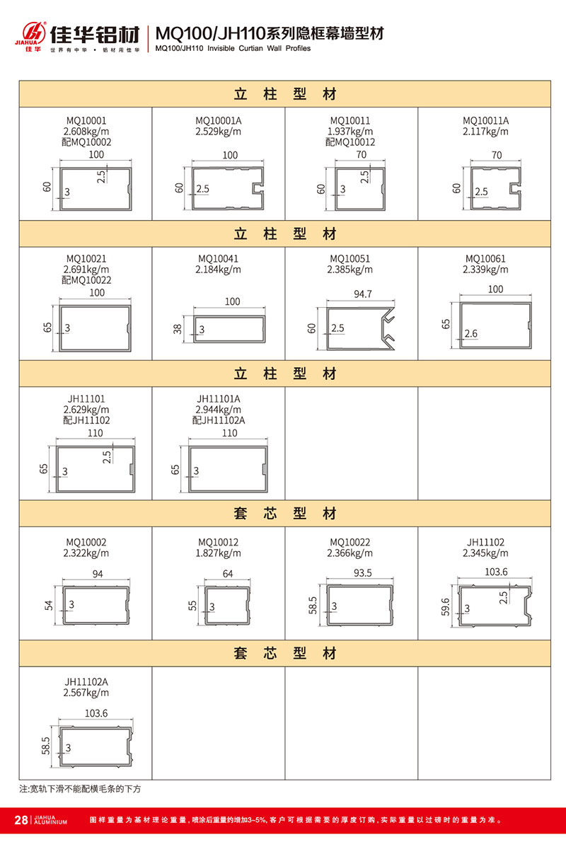 鋁型材規(guī)格型號(hào):MQ100/JH110 B