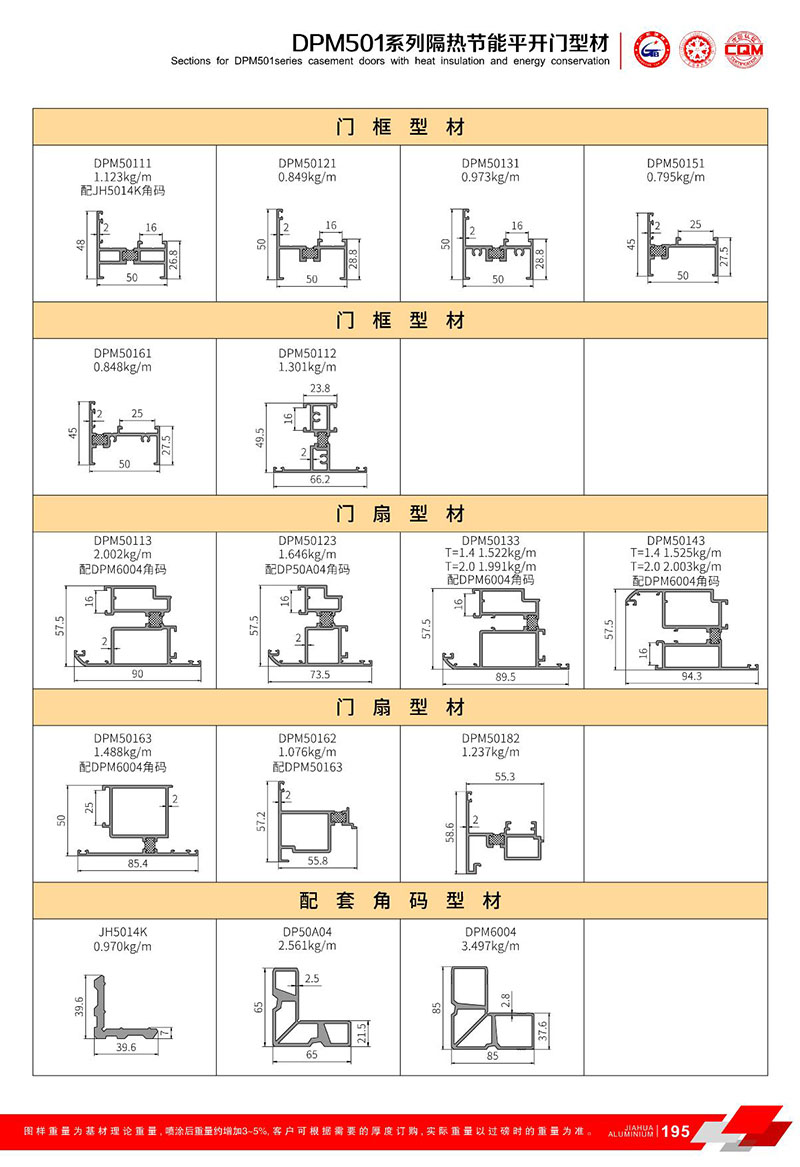鋁型材規(guī)格型號(hào):DPM501平開系列