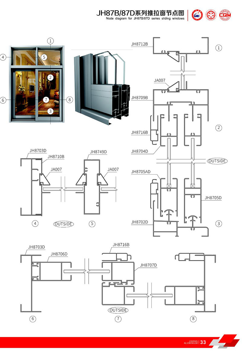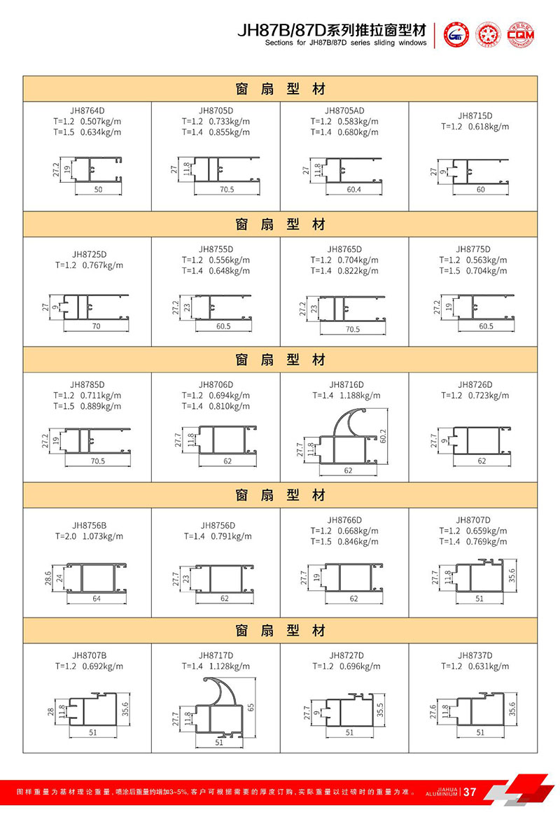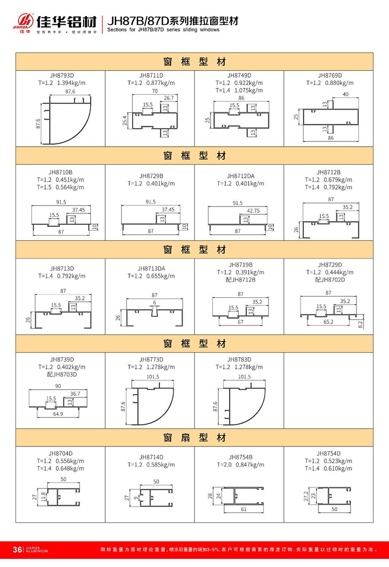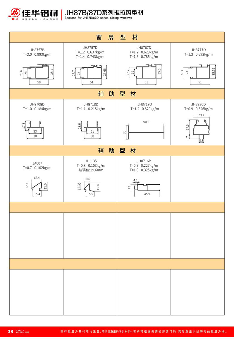 鋁型材規(guī)格型號:JH87B/87D 一