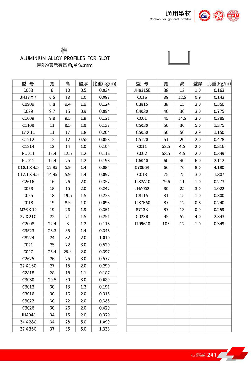 鋁型材規(guī)格型號(hào):槽鋁型材