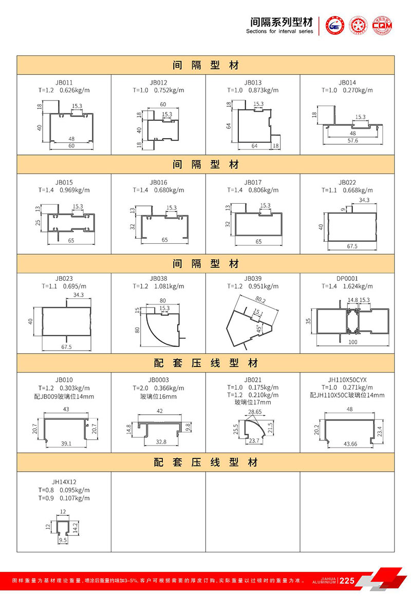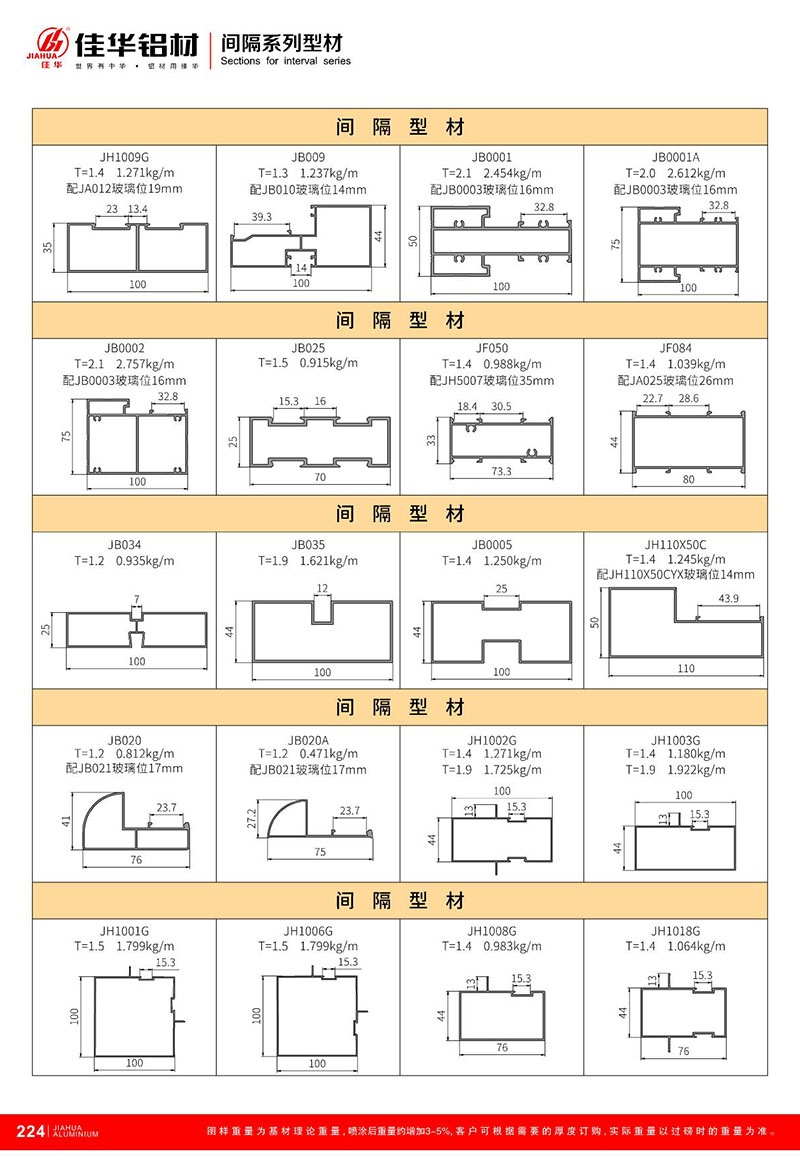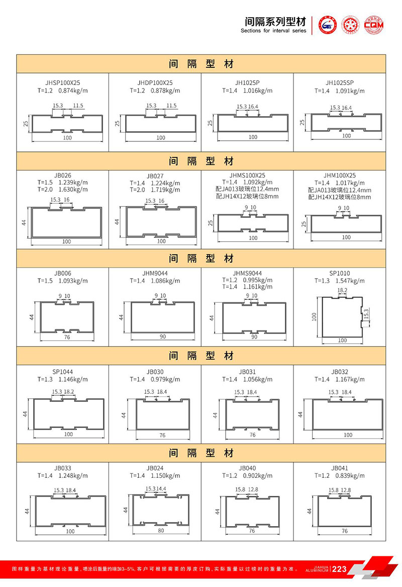 鋁型材規(guī)格型號(hào):固定/間隔型材